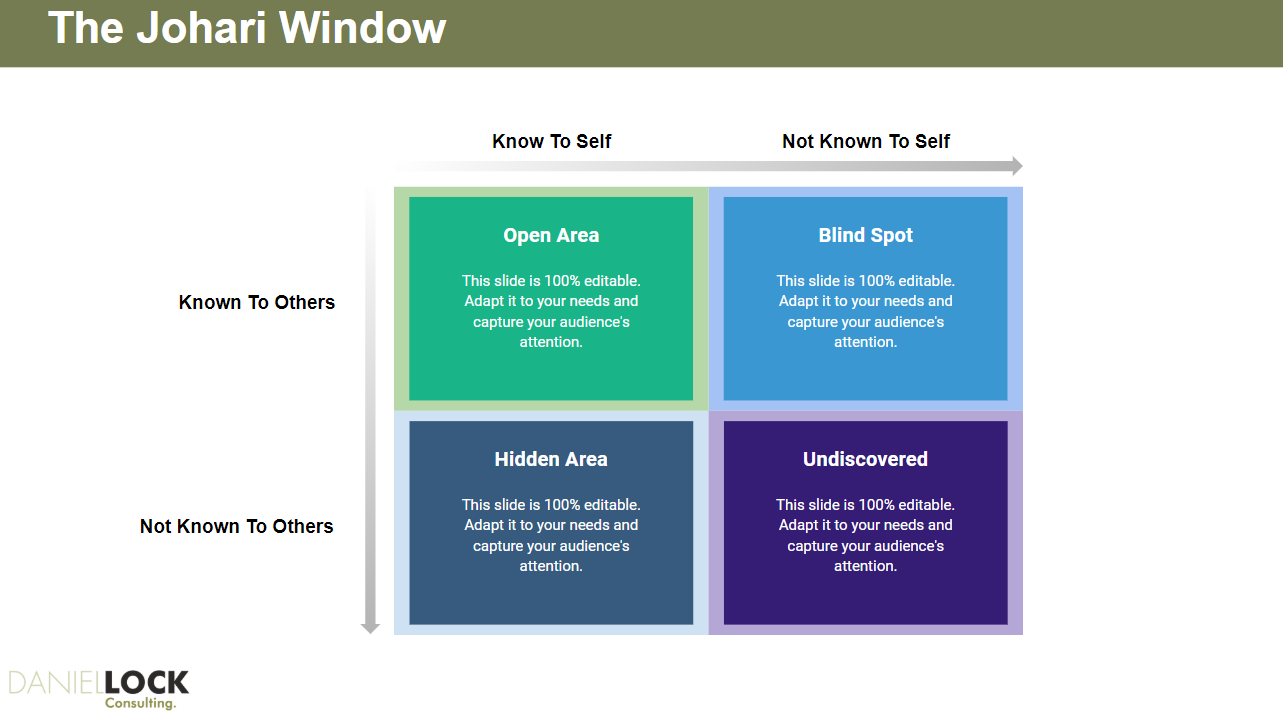 With the Johari Window, you can help team members to understand the value of self-disclosure, and encourage them to both give and accept, constructive feedback.