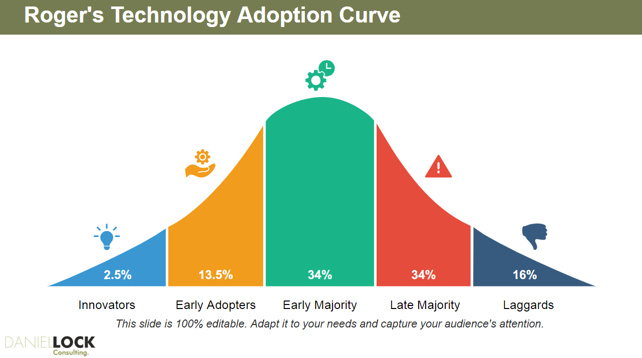 The Rogers Adoption Curve is just one of many aspects of cultural change that you need to understand. Push the right idea on the wrong group (a group that doesn’t like change) and you’ll fail. The Rogers Adoption Curve helps you find the right group to adopt your ideas.