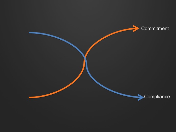 The salespeople are being compliant to the extent they have to, but showing no commitment. Or said another way, they're not willing. How do you drive willingness and commitment? You drive willingness through communication, leadership alignment and engagement through active participation.